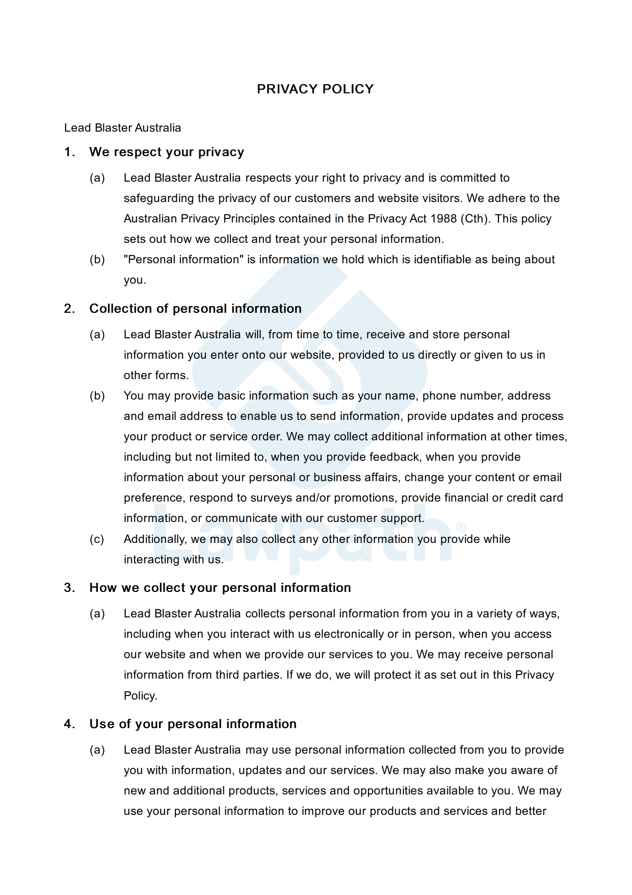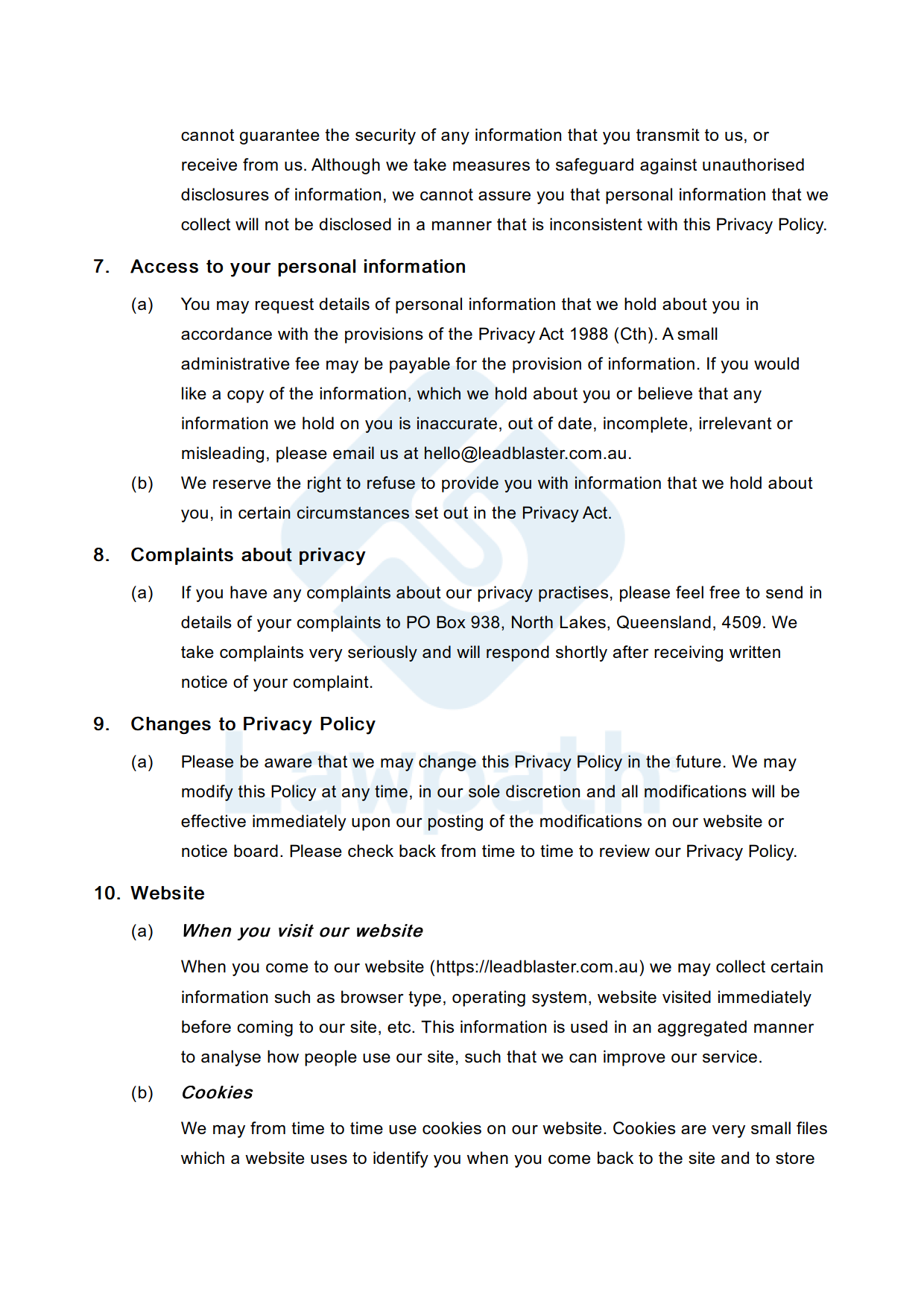 See below, our privacy policy. Your privacy matters to us, feel free to contact us with any queries.